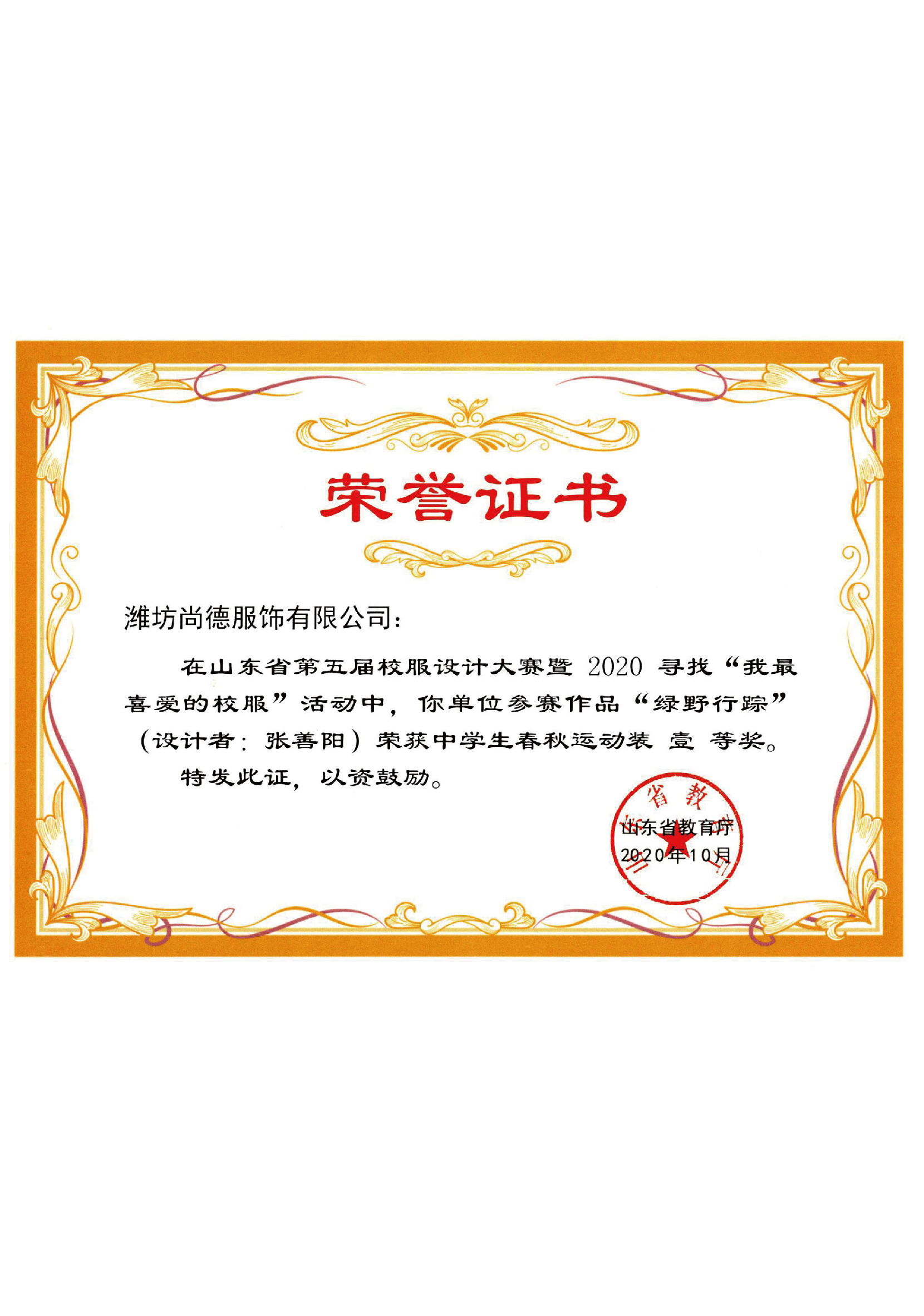 濰坊尚德服飾有限公司喜獲山...